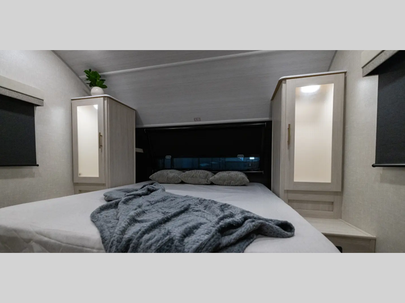 Sleeps 2 Slides 1 Length 25 ft 6 in Ext Width 8 ft Ext Height 10 ft 7 in Hitch Weight 415 lbs Dry Weight 4729 lbs Cargo Capacity 1500 lbs Fresh Water Capacity 30 gals Grey Water Capacity 30 gals Black Water Capacity 30 gals Available Beds Queen Refrigerator Type 12V Black Glass Convection Cooking Yes Cooktop Burners 2 Number of Awnings 1 Water Heater Type Tankless AC BTU 15000 btu TV Info 12V TV Awning Info 13' Power Shower Type Standard Electrical Service 30 amp Similar Floorplans